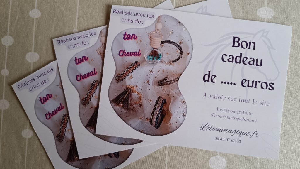 Lorsque j’ai réceptionné les crins de votre cheval, que je les ai lavés, puis triés et que vous avez choisi le bijou de vos rêves, une partie de mon travail est déjà fait. Cela me permet de créer pour vous d’autres bijoux à des prix encore plus doux 😊. Elles seront amenées à évoluer grâce à vous 😉. Bien-sûr elles sont toutes cumulables 💫.